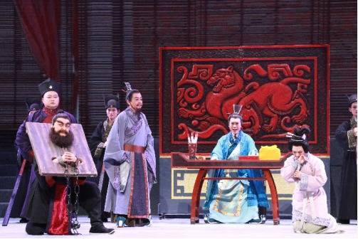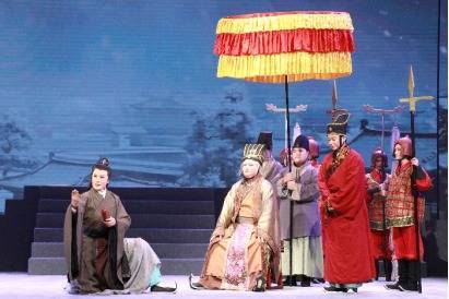 三是舞美焕彩专心。历史剧如何与时代精神共振?小戏种如何摆脱“土里土气”?《荐官记》的舞美设计令人眼前一亮,多场景、多道具及服装呈现,汉韵十足,“声光电”运用美轮美奂,现代感满满。如在刻画王密在“是与非”“罪与罚”痛苦挣扎的心灵戏中,大胆借鉴现代话剧、舞剧表现方式,在黑衣、白衣舞者组合中变换场景编舞隐喻,直至随着王密爆发出解脱的吼声,身后一道闪电划破夜空,观众掌声四起。这掌声背后,是观众在代入感中激发出的获得感,是在情绪价值和共鸣体验中收获的艺术审美满足!